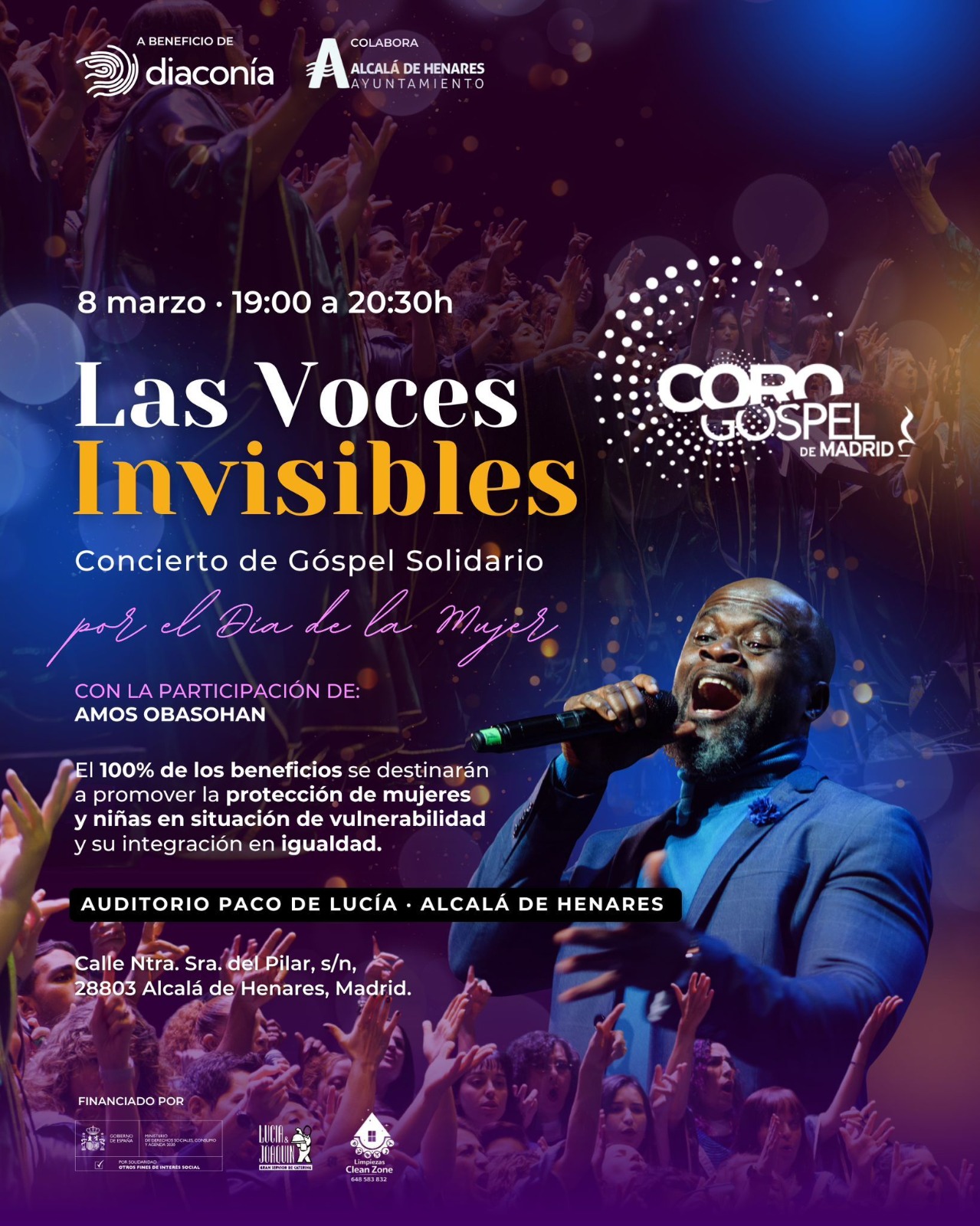 Diaconía organiza el sábado 8 de Marzo a las 19:00h un concierto solidario con la participación del Coro Gospel Solidario y Amos Obasohan. El 100% de los beneficios serán destinados a la protección de mujeres y niñas en situación de vulnerabilidad y su integración en igualdad. La entrada son 17€. Para mas información y comprar entradas entra en www.diaconia.es